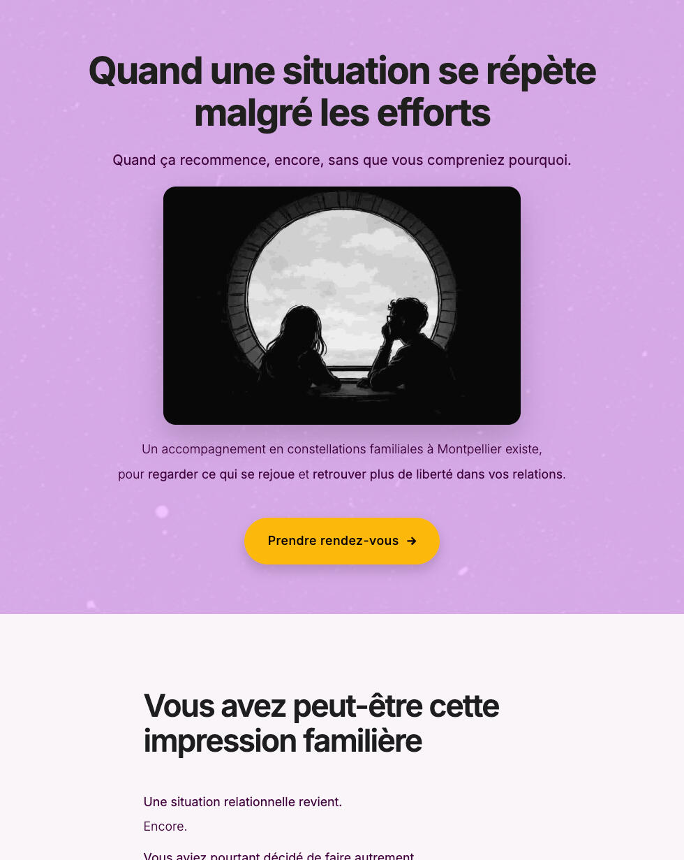 Voici l'aperçu d'un site construit à partir d'une Scène Miroir, issue d'une expertise en Constellations Familiales.